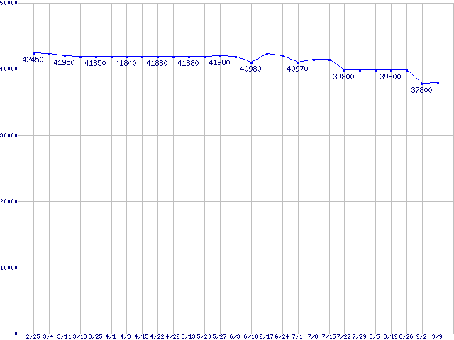 | HDD 160〜200GB未満の最安値推移 |