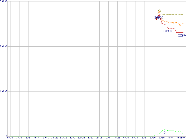 WD4500HLHX (450.0GB)の価格推移↑前グラフ↓次グラフ(2009年6月25日〜2010年9月9日)※このグラフは過去のデータも税率5%相当に調整した税込み相当額のグラフです。 税率変更や、総額表示方式導入(2004年4月)の影響は除いています。●関連グラフHDD/SSD主要製品の最安値推移HDD/SSD主要製品(最安値2万円以上)の最安値推移HDD 400〜500GB未満の最安値推移WD VelociRaptor (10000rpm,6Gb/s,16MB)の最安値推移●凡例最安値(点線部は販売店未確認または未調査)平均値最高値ショップ数