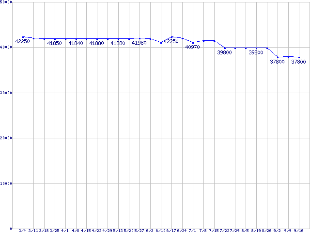 | HDD 160〜200GB未満の最安値推移 |