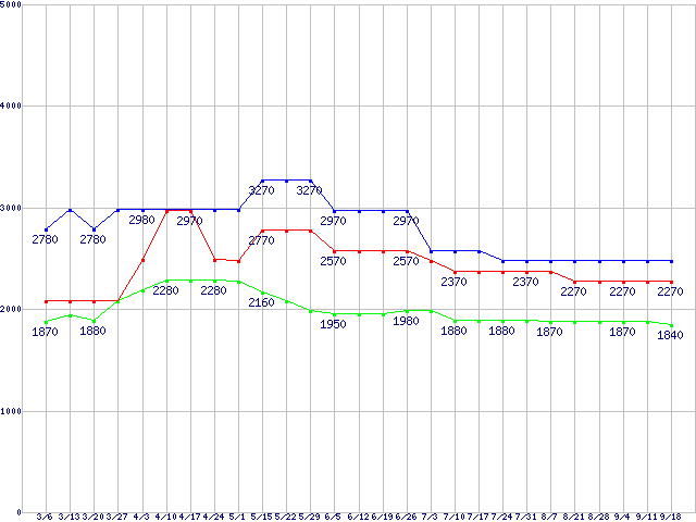 | ※製品名をクリックすると個別のグラフを表示します ※点線部は販売店が確認できなかった、または調査データがないことを示します | |
