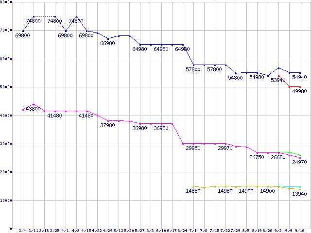 | ※製品名をクリックすると個別のグラフを表示します ※点線部は販売店が確認できなかった、または調査データがないことを示します | |