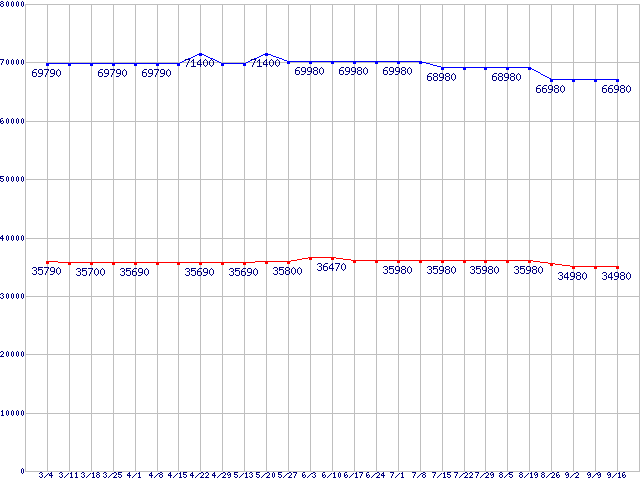 | X25-E Extreme SATA SSD (SSD,3Gbps,2.5インチ,SLC)の最安値推移 |