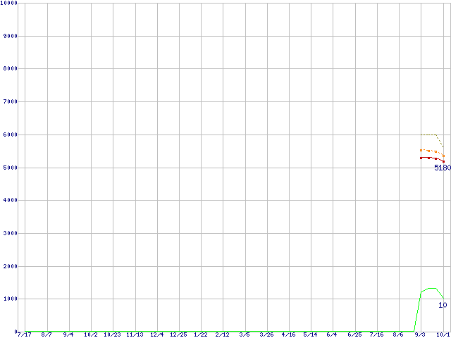 Celeron E3500 (2.7GHz)の価格推移↑前グラフ↓次グラフ(2009年7月17日〜2010年10月1日)※このグラフは過去のデータも税率5%相当に調整した税込み相当額のグラフです。●関連グラフCPU主要製品の最安値推移CPU主要製品(最安値1万円未満)の最安値推移Intel系CPUの最安値推移LGA775 (FSB 800MHz,L2 1MB,Dual Core,TDP 65W)の最安値推移●凡例最安値(点線部は販売店未確認または未調査)平均値最高値ショップ数
