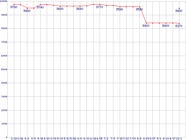 | Socket AM3 (HyperTransport 3.0,Dual Core,L3 6MB,TDP 80W)の最安値推移 |