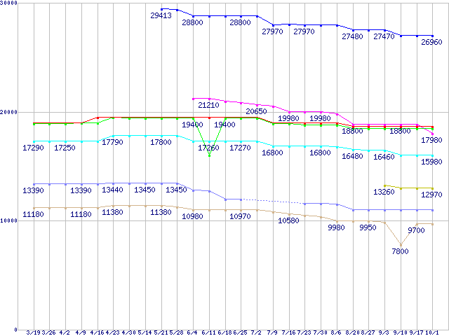 | ※製品名をクリックすると個別のグラフを表示します ※点線部は販売店が確認できなかった、または調査データがないことを示します | |