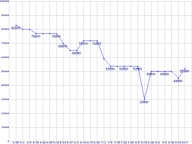 | HDD 200〜250GB未満の最安値推移 |
