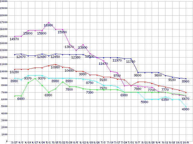 | ※製品名をクリックすると個別のグラフを表示します ※点線部は販売店が確認できなかった、または調査データがないことを示します | |
