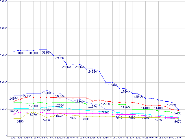 | ※製品名をクリックすると個別のグラフを表示します ※点線部は販売店が確認できなかった、または調査データがないことを示します | |