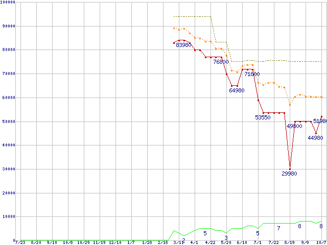 | 2.5インチSSD(SandForce製コントローラ) (200〜240GB,MLC)の価格推移 |