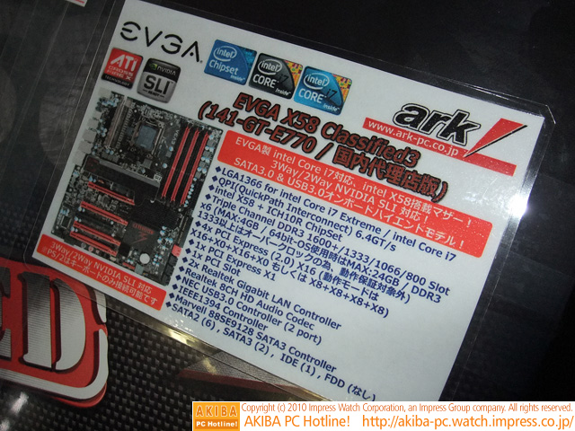 AKIBA PC Hotline! 2010年10月9日号今週見つけた新製品:LGA1366マザーボード [拡大画像]EVGA X58 Classified3(141-GT-E770)前の画像←→次の画像