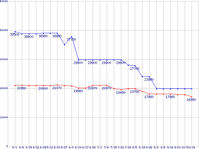 | ※製品名をクリックすると個別のグラフを表示します ※点線部は販売店が確認できなかった、または調査データがないことを示します |