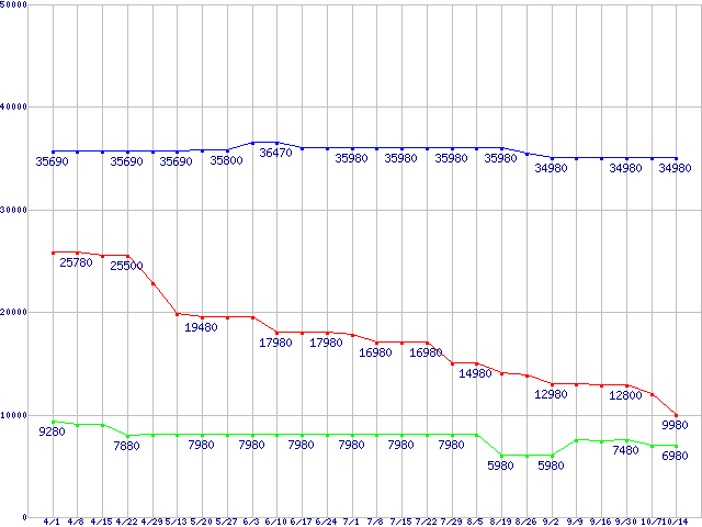 | ※製品名をクリックすると個別のグラフを表示します ※点線部は販売店が確認できなかった、または調査データがないことを示します | |