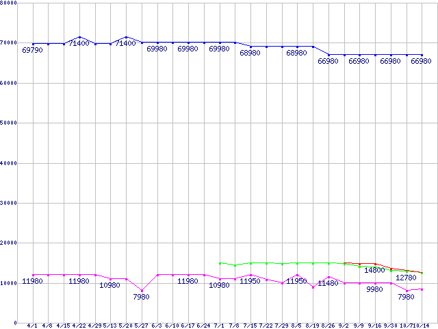 | HDD/SSD 60GB〜80GB未満の最安値推移 |