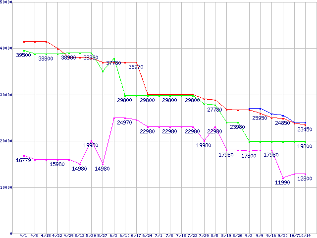 | ※製品名をクリックすると個別のグラフを表示します ※点線部は販売店が確認できなかった、または調査データがないことを示します | |