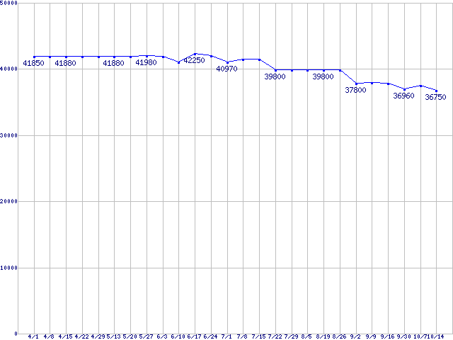 | HDD 160〜200GB未満の最安値推移 |