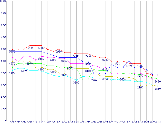 | ※製品名をクリックすると個別のグラフを表示します ※点線部は販売店が確認できなかった、または調査データがないことを示します | |