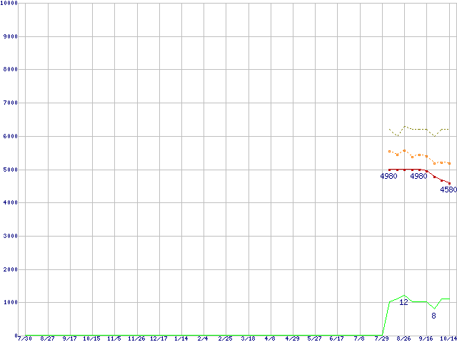 0S02598 (500GB,8MB)の価格推移↑前グラフ↓次グラフ(2009年7月30日〜2010年10月14日)※このグラフは過去のデータも税率5%相当に調整した税込み相当額のグラフです。 税率変更や、総額表示方式導入(2004年4月)の影響は除いています。●関連グラフHDD/SSD主要製品の最安値推移HDD/SSD主要製品(最安値1万円未満)の最安値推移HDD 500〜600GB未満の最安値推移TRAVELSTAR (5400rpm,3Gb/s,2.5インチ)の最安値推移●凡例最安値(点線部は販売店未確認または未調査)平均値最高値ショップ数