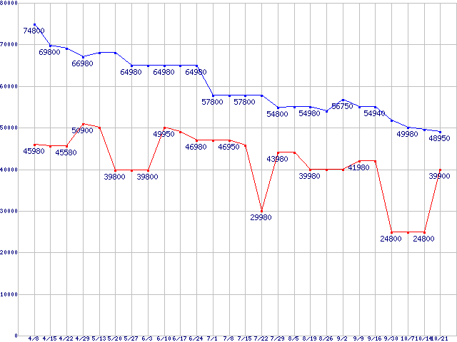 | ※製品名をクリックすると個別のグラフを表示します ※点線部は販売店が確認できなかった、または調査データがないことを示します |