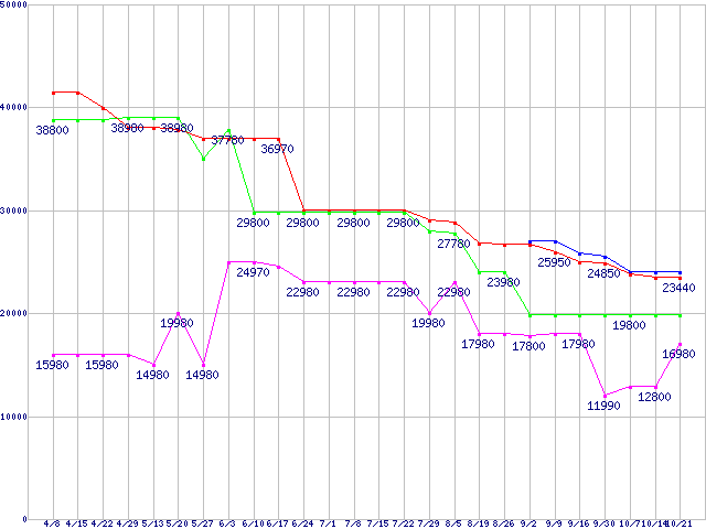 | ※製品名をクリックすると個別のグラフを表示します ※点線部は販売店が確認できなかった、または調査データがないことを示します | |