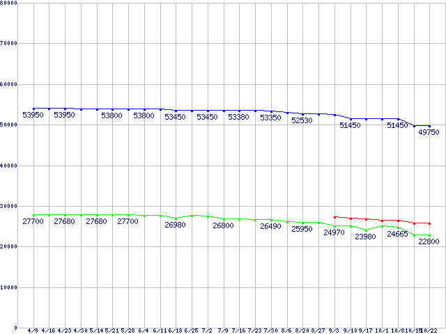 | ※製品名をクリックすると個別のグラフを表示します ※点線部は販売店が確認できなかった、または調査データがないことを示します | |
