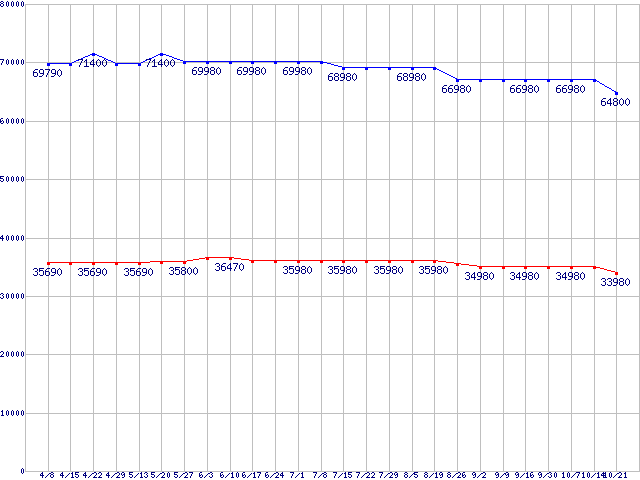 | ※製品名をクリックすると個別のグラフを表示します ※点線部は販売店が確認できなかった、または調査データがないことを示します |