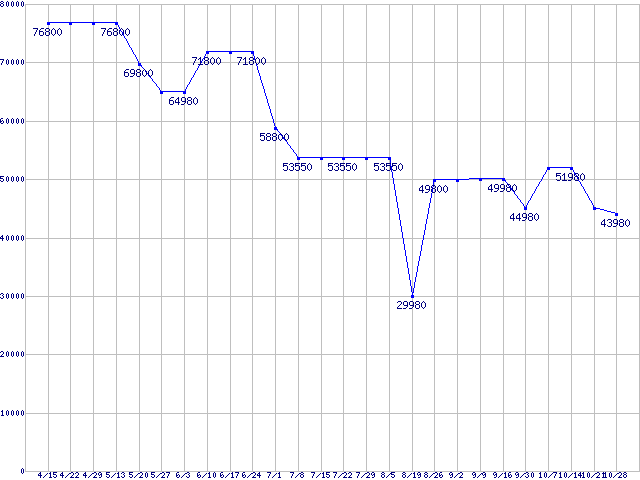 | ※製品名をクリックすると個別のグラフを表示します ※点線部は販売店が確認できなかった、または調査データがないことを示します |