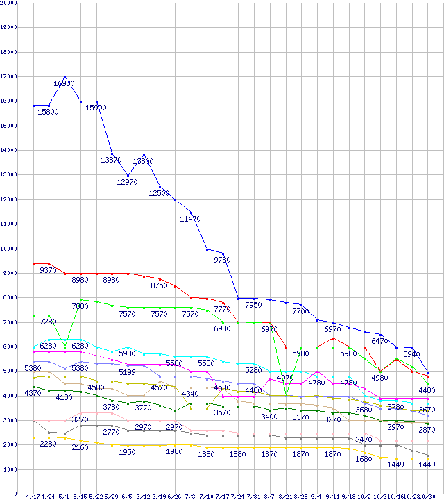 | ※製品名をクリックすると個別のグラフを表示します ※点線部は販売店が確認できなかった、または調査データがないことを示します | |