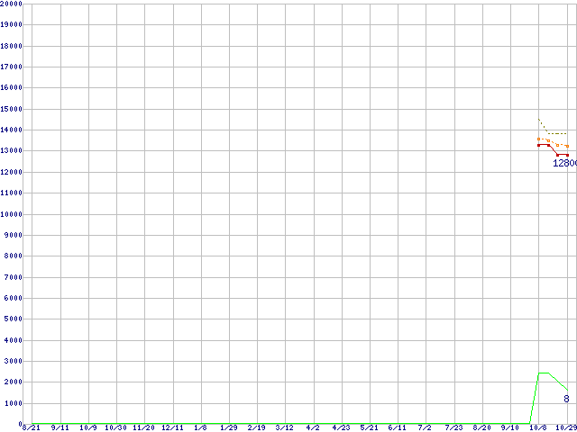 Athlon II X4 615e (2.5GHz,L2 512KB×4,TDP 45W)の価格推移↑前グラフ(2009年8月21日〜2010年10月29日)※このグラフは過去のデータも税率5%相当に調整した税込み相当額のグラフです。●関連グラフCPU主要製品の最安値推移CPU主要製品(最安値1万円〜2万円未満)の最安値推移AMD系CPUの最安値推移Socket AM3 (Quad Core)の最安値推移●凡例最安値(点線部は販売店未確認または未調査)平均値最高値ショップ数