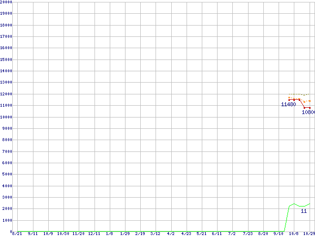 Athlon II X4 645 (3.1GHz,L2 512KB×4,TDP 95W)の価格推移↑前グラフ↓次グラフ(2009年8月21日〜2010年10月29日)※このグラフは過去のデータも税率5%相当に調整した税込み相当額のグラフです。●関連グラフCPU主要製品の最安値推移CPU主要製品(最安値1万円〜2万円未満)の最安値推移AMD系CPUの最安値推移Socket AM3 (Quad Core)の最安値推移●凡例最安値(点線部は販売店未確認または未調査)平均値最高値ショップ数