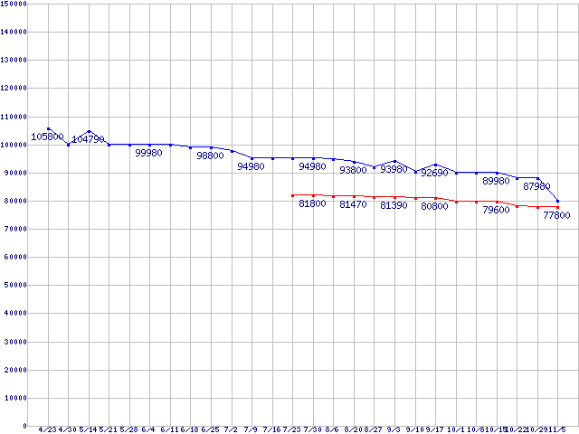 | CPU主要製品(最安値6万円以上)の最安値推移 |