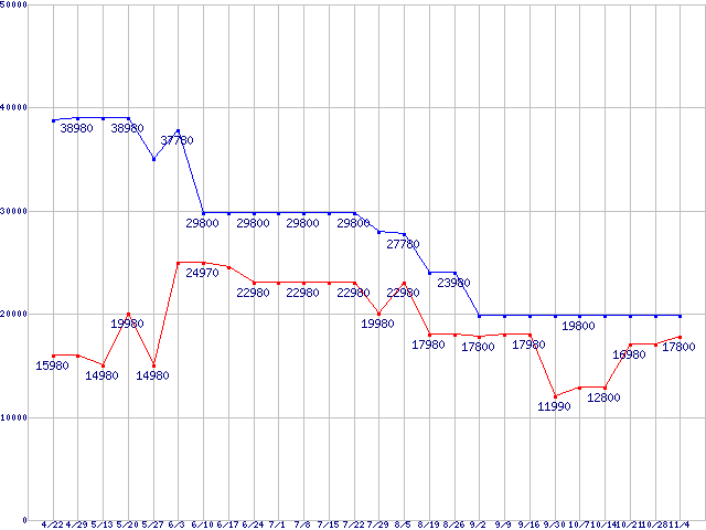 | ※製品名をクリックすると個別のグラフを表示します ※点線部は販売店が確認できなかった、または調査データがないことを示します |