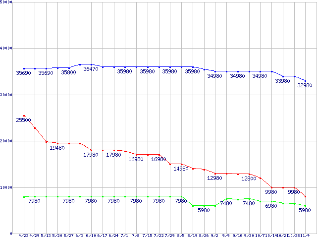 | HDD/SSD 30GB〜60GB未満の最安値推移 |