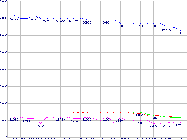 | HDD/SSD 60GB〜80GB未満の最安値推移 |