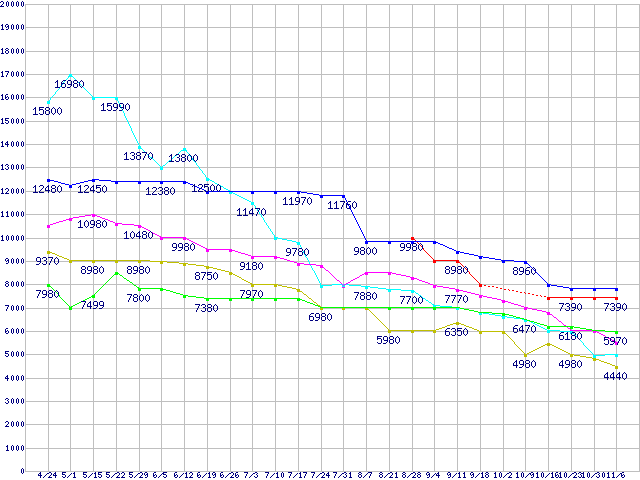 | ※製品名をクリックすると個別のグラフを表示します ※点線部は販売店が確認できなかった、または調査データがないことを示します | |