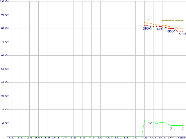 Core i7-970 (3.2GHz)の価格推移↓次グラフ(2009年8月21日〜2010年11月5日)※このグラフは過去のデータも税率5%相当に調整した税込み相当額のグラフです。●関連グラフCPU主要製品の最安値推移CPU主要製品(最安値6万円以上)の最安値推移Intel系CPUの最安値推移LGA1366 (QPI 4.8GT/s,L3キャッシュ12MB,6Core,Hyper-Threading,TDP 130W)の最安値推移●凡例最安値(点線部は販売店未確認または未調査)平均値最高値ショップ数