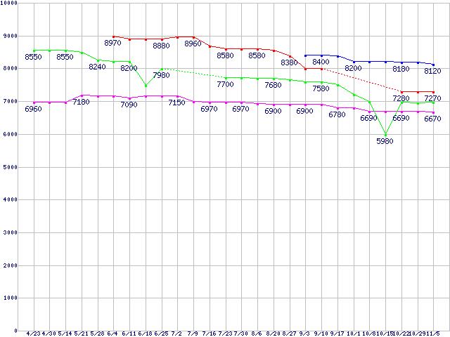 | ※製品名をクリックすると個別のグラフを表示します ※点線部は販売店が確認できなかった、または調査データがないことを示します | |