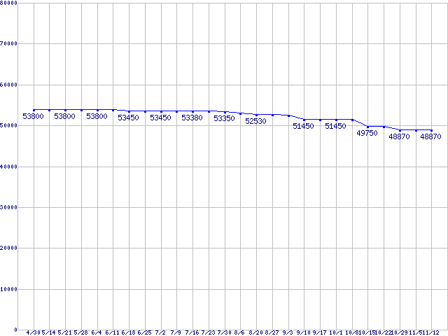 | CPU主要製品(最安値3万円〜6万円未満)の最安値推移 |