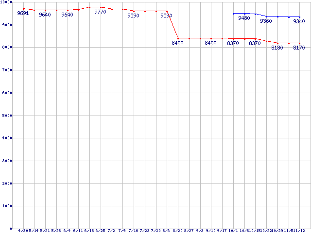 | ※製品名をクリックすると個別のグラフを表示します ※点線部は販売店が確認できなかった、または調査データがないことを示します |