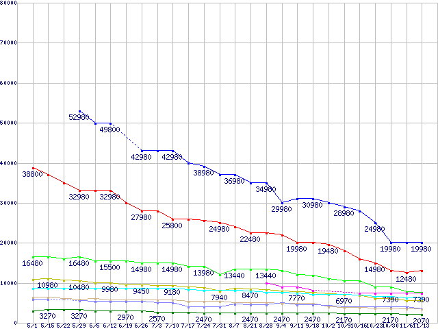 | ※製品名をクリックすると個別のグラフを表示します ※点線部は販売店が確認できなかった、または調査データがないことを示します | |
