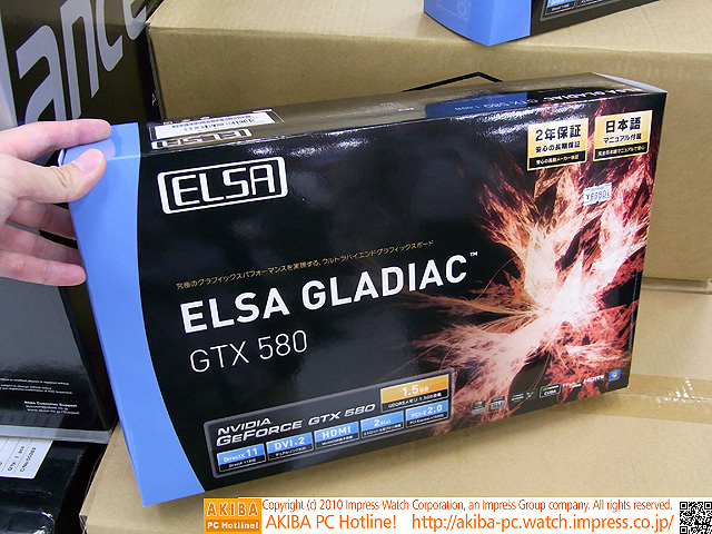 AKIBA PC Hotline! 2010年11月13日号今週見つけた新製品:ビデオカード [拡大画像]ELSA GLADIAC GTX 580 1.5GB(GD580-15GERX)前の画像←[記事に戻る]