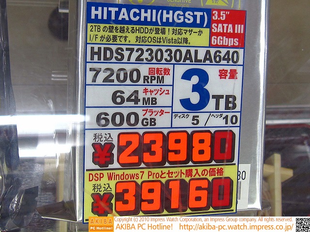 AKIBA PC Hotline! 2010年11月20日号[拡大画像]3TB HDDが日立からも登場、7,200rpm今週見つけた新製品:ハードディスク 日立 HDS723030ALA640前の画像←→次の画像