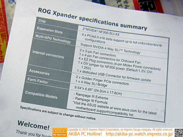 AKIBA PC Hotline! 2010年11月20日号[拡大画像]「4-Way SLI対応用」のマザーボード用子亀基板が発売に今週見つけた新製品:そのほかの拡張カード ASUS ROG Xpander前の画像←→次の画像