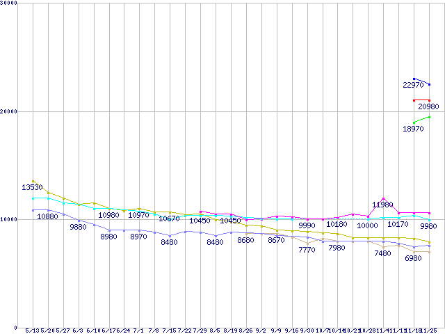 | ※製品名をクリックすると個別のグラフを表示します ※点線部は販売店が確認できなかった、または調査データがないことを示します | |