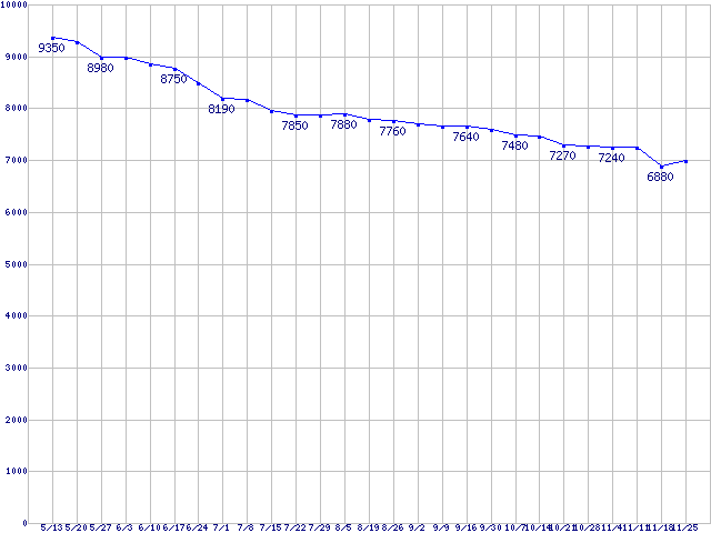 | WD Caviar Black (7200rpm,6Gb/s)の最安値推移 |