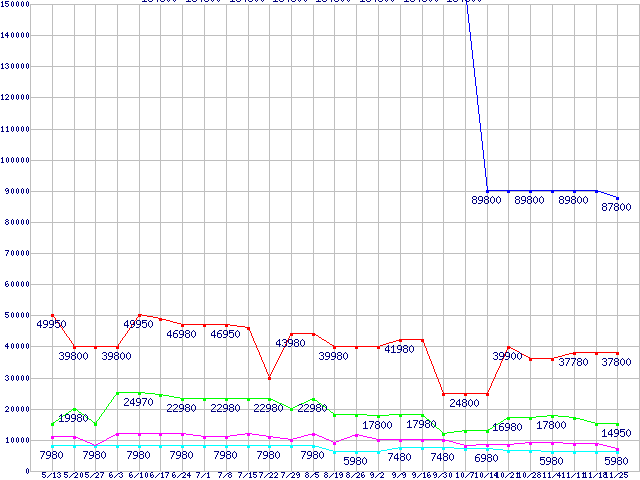 | ※製品名をクリックすると個別のグラフを表示します ※点線部は販売店が確認できなかった、または調査データがないことを示します | |