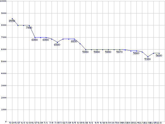 | HDD 1.5TB〜2TB未満の最安値推移 |