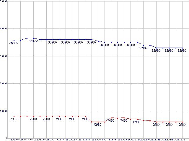 | HDD/SSD 30GB〜60GB未満の最安値推移 |