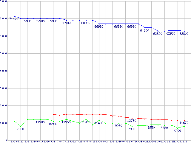 | HDD/SSD 60GB〜80GB未満の最安値推移 |