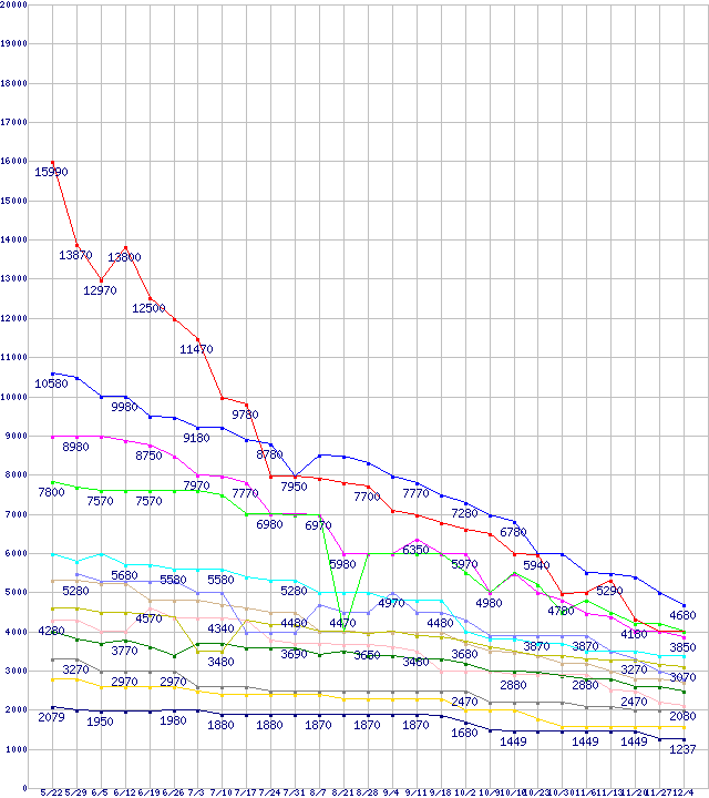 | ※製品名をクリックすると個別のグラフを表示します ※点線部は販売店が確認できなかった、または調査データがないことを示します | |