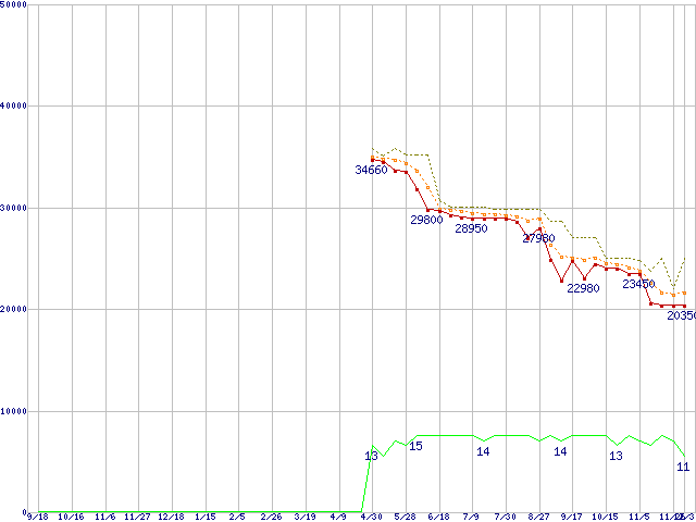 | Phenom II X6 1090T Black Edition (3.2GHz,L2 512KB×6,L3 6MB,TDP 125W)の価格推移 |